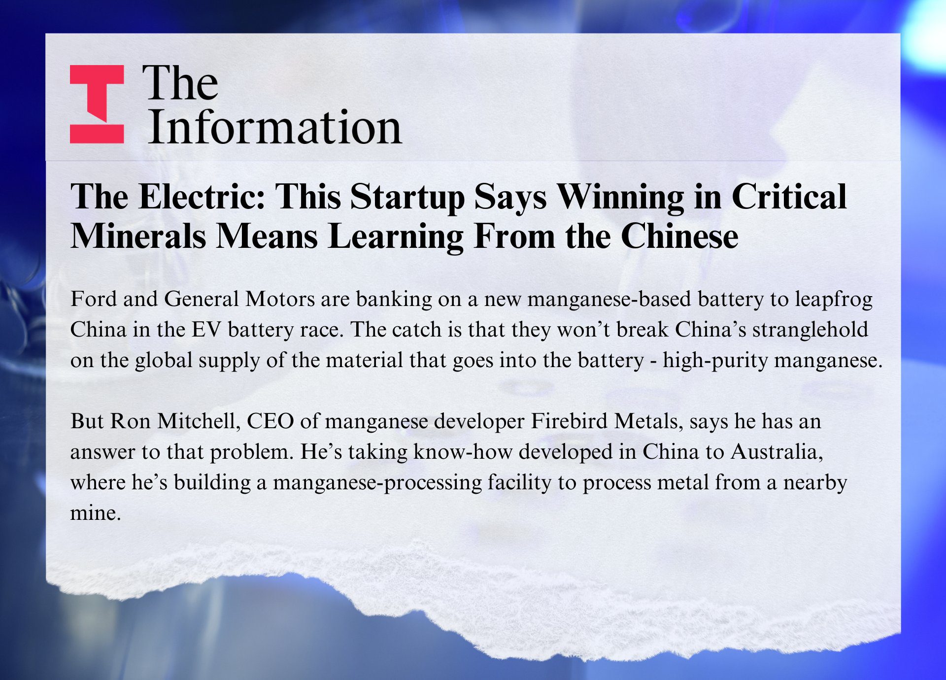The Electric -This Startup Says Winning in Critical Minerals Means Learning From the Chinese