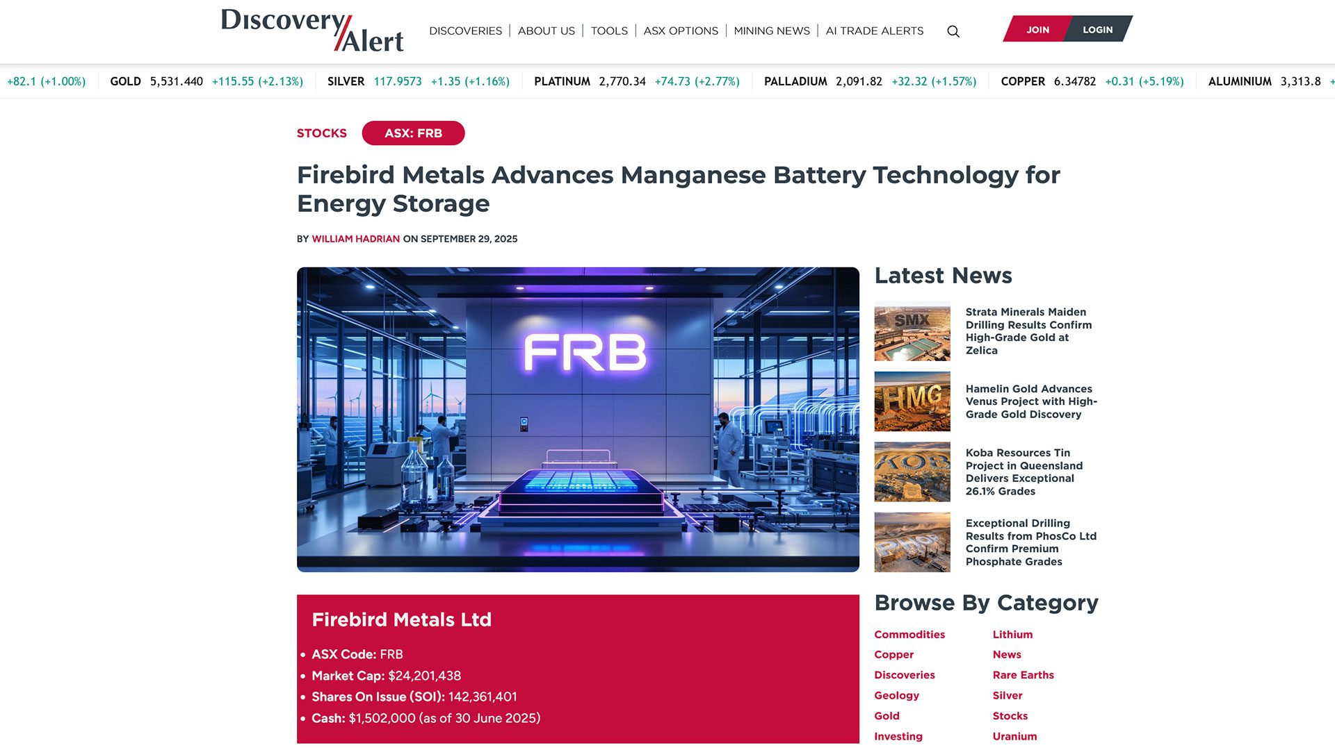 Discovery Alert – Firebird Metals Advances Manganese Battery Technology for Energy Storage