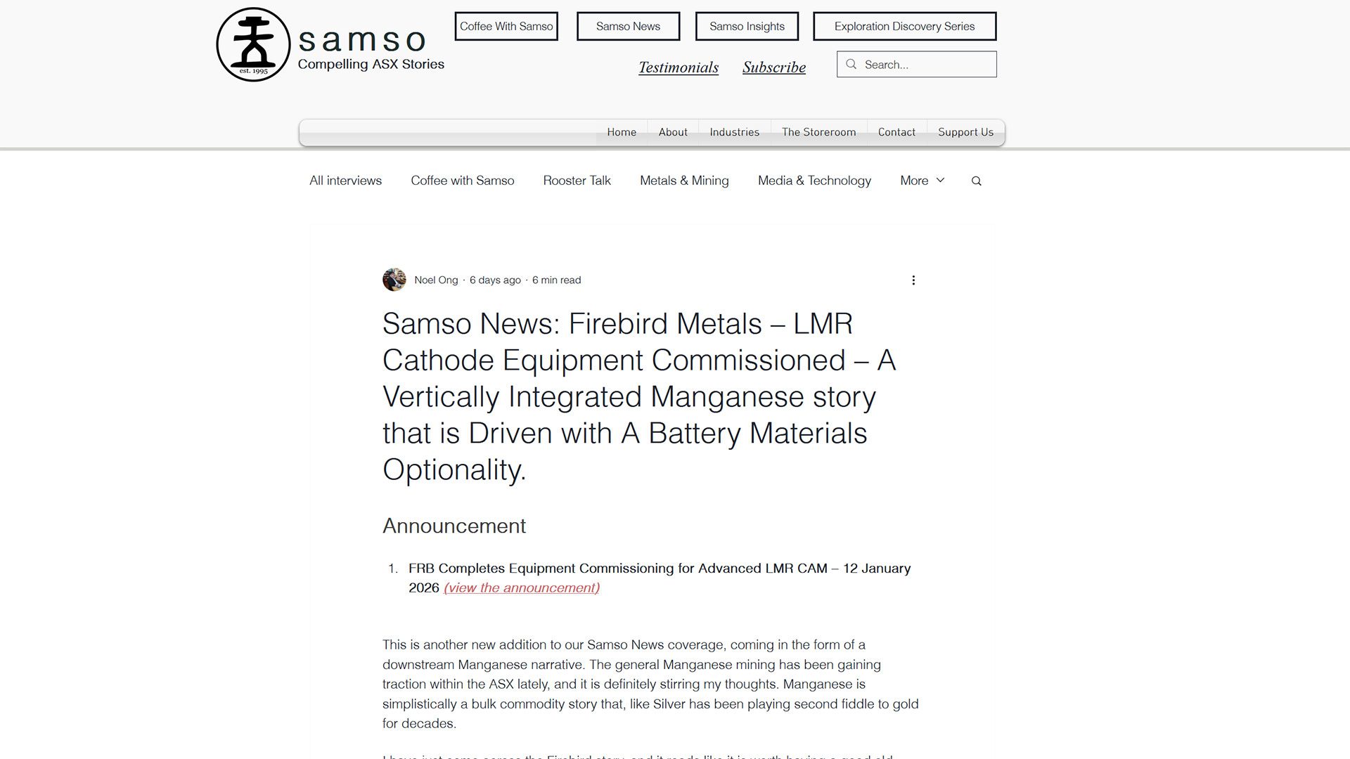 Samso – LMR Cathode Equipment Commissioned – A Vertically Integrated Manganese story that is Driven with A Battery Materials Optionality